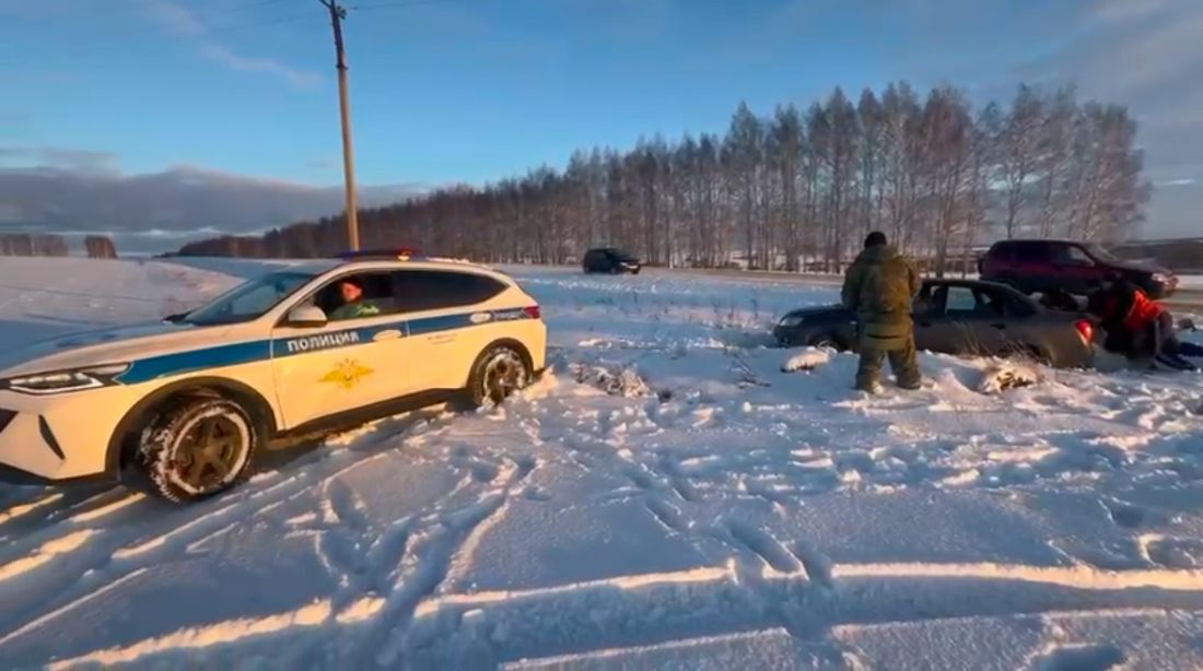 В Лунинском районе автоинспекторы вытащили машину, увязшую в снегу