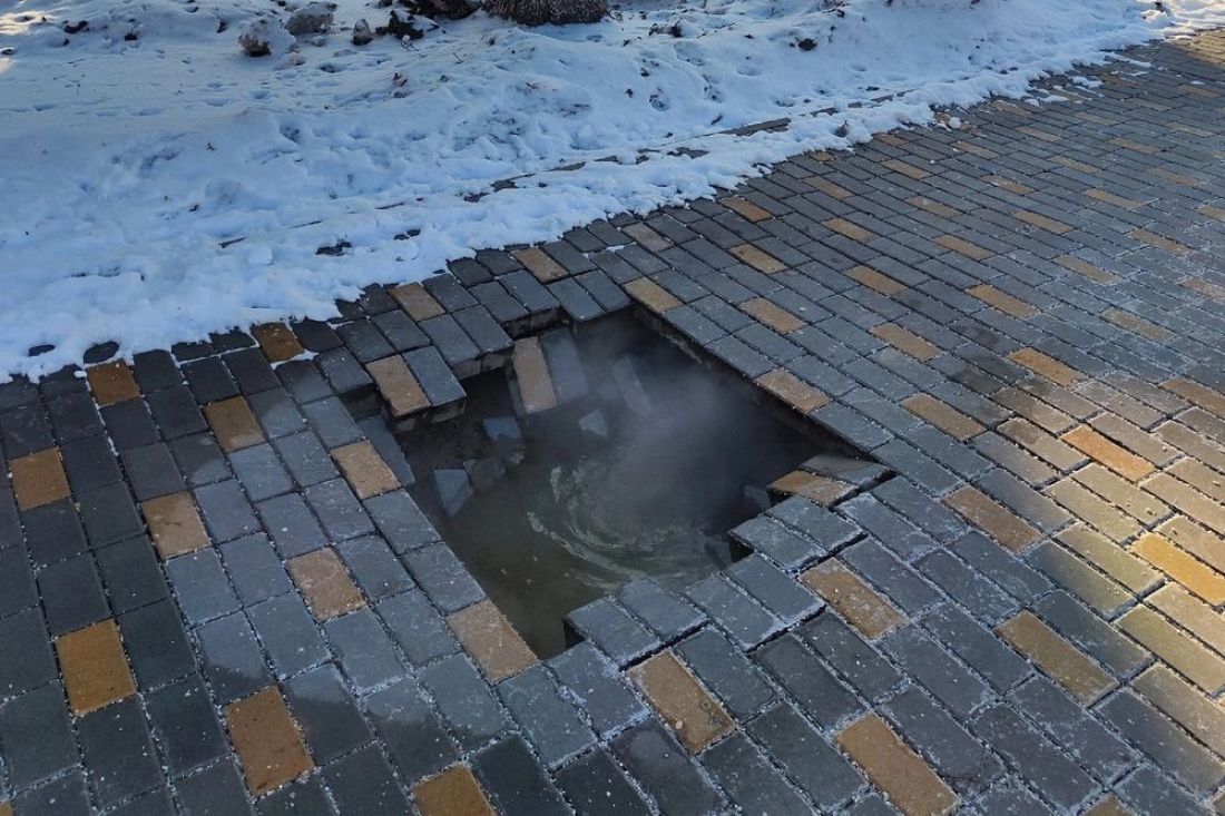 На тротуаре в центре Пензы образовался провал с горячей водой