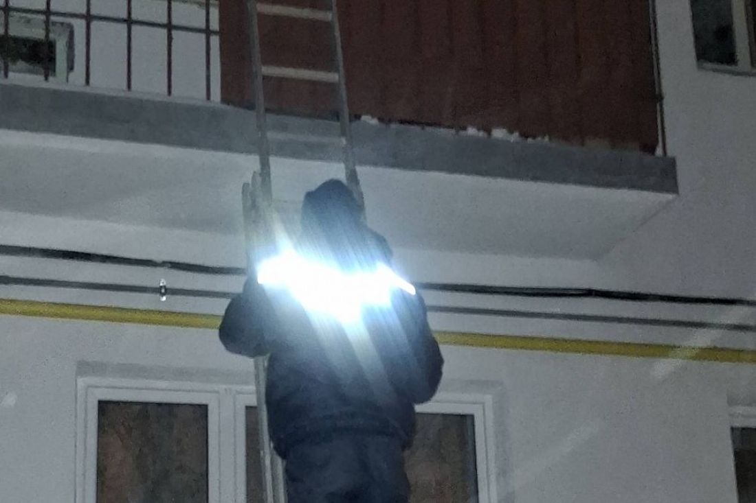 Понадобилось специальное оборудование — трехколенная лестница, чтобы добраться до окна второго этажа и таким образом проникнуть через форточку в квартиру.