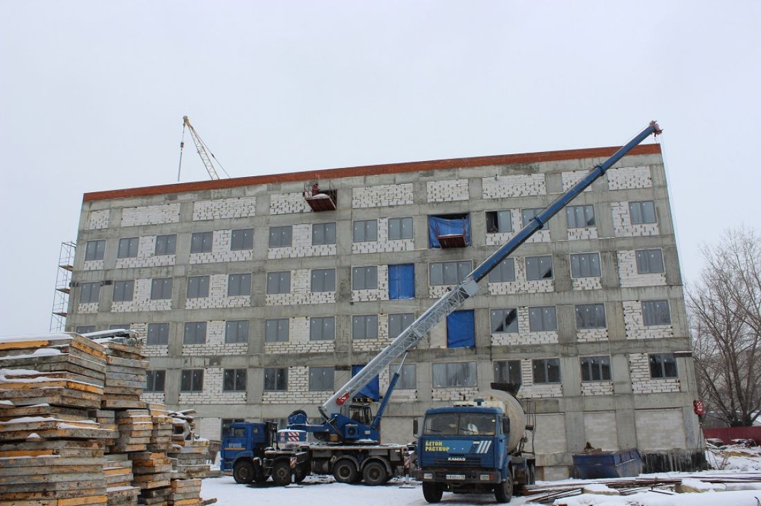 Специалисты подрядной организации проводят работы по отделке фасада нового здания, устройству вентиляции и отопления. Ведется внутренняя отделка помещений, проводятся электромонтажные работы, утепление технического этажа.