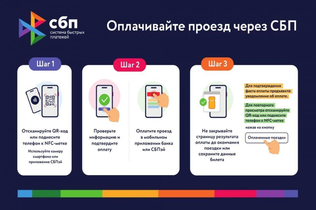 Оплата через СБП проходит моментально, средства сразу же поступают на счет транспортного оператора или перевозчика. Прием оплаты через СБП помогает повысить уровень обслуживания на транспорте и обеспечивает перевозчикам дополнительную экономию на комиссиях за эквайринг.