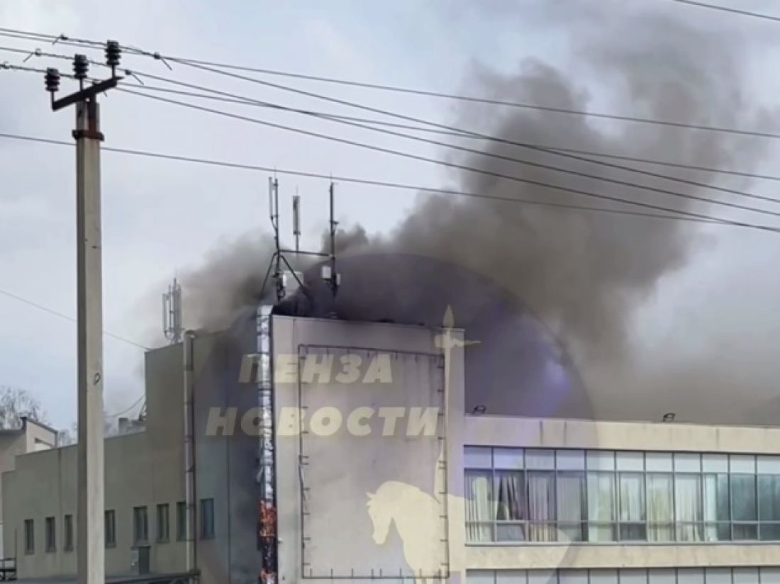 Кадры с места пожара появились в телеграм-канале «Пенза Новости». Очевидец снял на видео, как горит труба, расположенная с внешней стороны здания, поднимается густой черный дым.