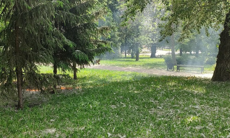 Судя по кадрам, загорелся тополиный пух, возникло небольшое задымление. Как пояснил автор фото, снимки сделаны пару часов назад. Неизвестно, что стало причиной возгорания — жаркая погода или человеческий фактор.