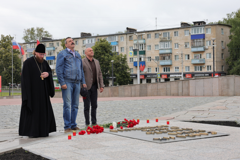 Участники акции минутой молчания почтили память павших на полях сражений и возложили цветы к Вечному огню.