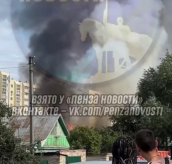 В ролике видно открытый огонь и столб черного дыма, поднимающийся в небо. Пожар привлек внимание местных жителей, которые наблюдали за происходящим.