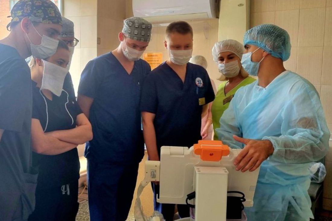 Новый российский аппарат оснащен сенсорным экраном и полным набором датчиков. Как отметила заведующая отделением УЗИ Елена Жувикова, мобильность прибора позволяет использовать его как в операционных, так и в реанимационных отделениях.
