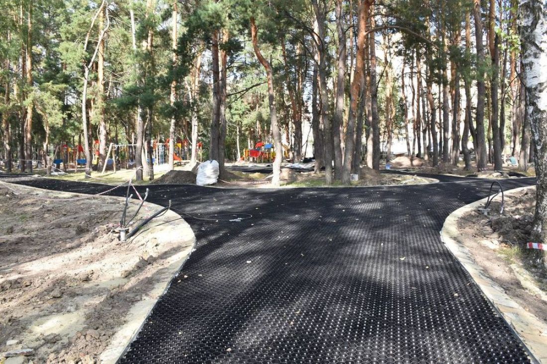 В настоящее время они монтируют опоры освещения в зоне отдыха и делают основания под клумбы и игровые элементы.