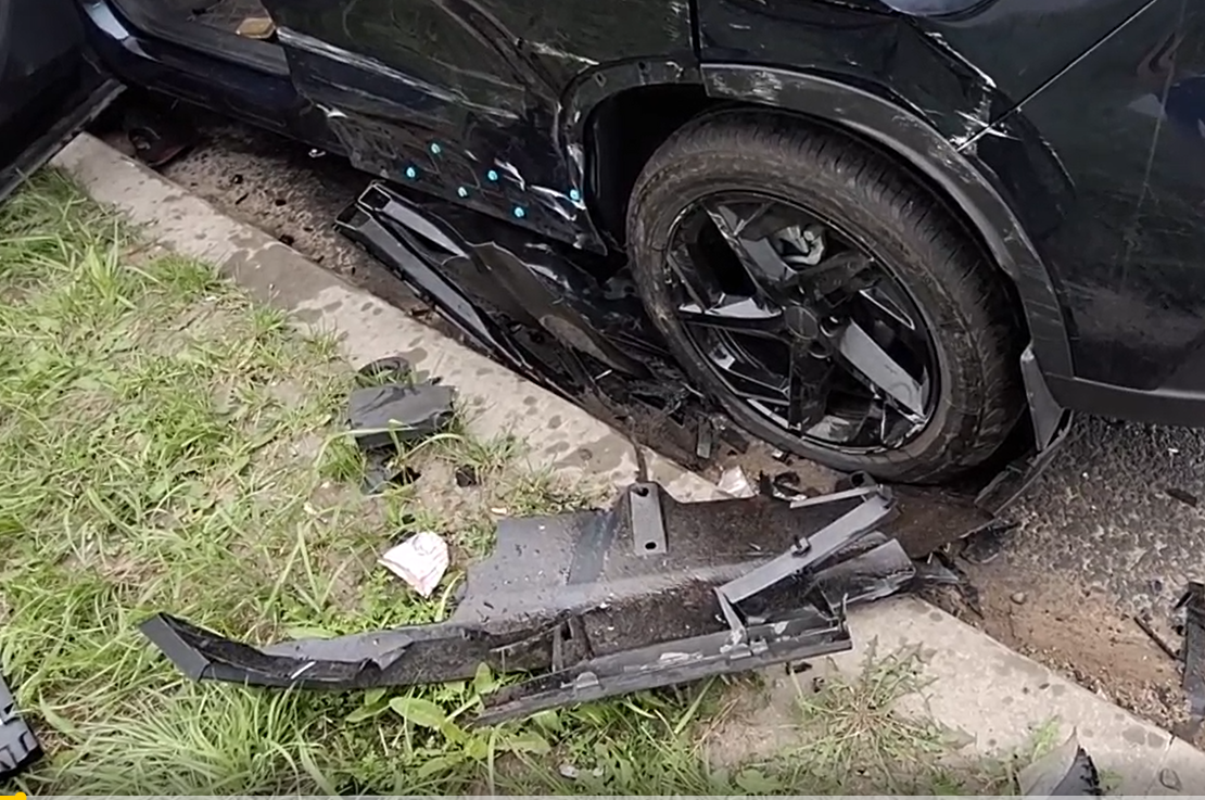 На кадрах запечатлены попавшие в аварию машины. Транспортные средства получили серьезные повреждения, фрагменты автомобилей разлетелись по проезжей части.