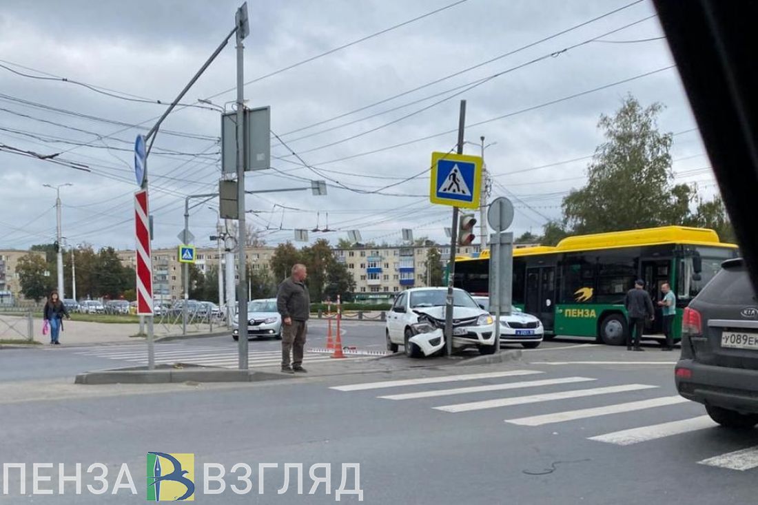 В Пензе водитель «Лада Гранта» врезался в столб со светофором