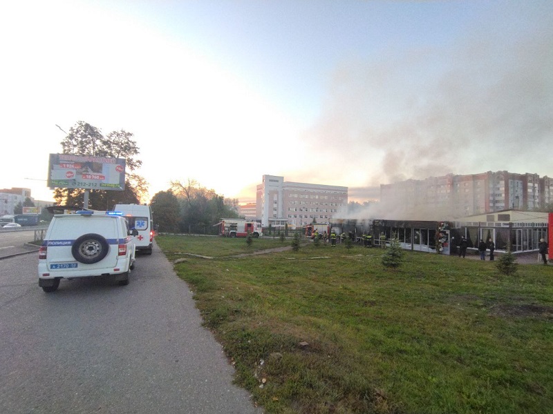 Примерно в 5:30 уже не было открытого огня, а пожарные проливали конструкции торгового павильона. На место происшествия прибыли скорая помощь и полиция.