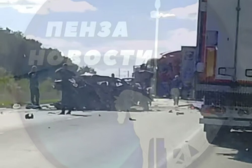 Опубликовано видео момента смертельной аварии на трассе М-5 под Пензой.