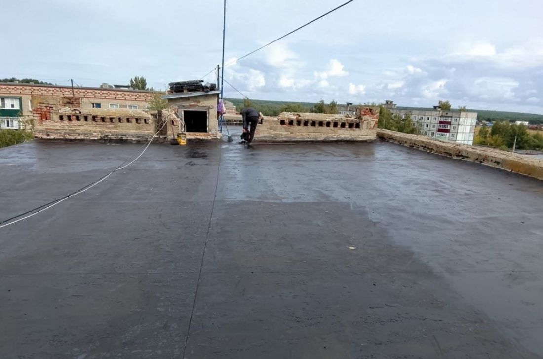 Сейчас рабочие укладывают покрытие из современных и высококачественных материалов, обеспечивающих долговечность и надежность кровли.