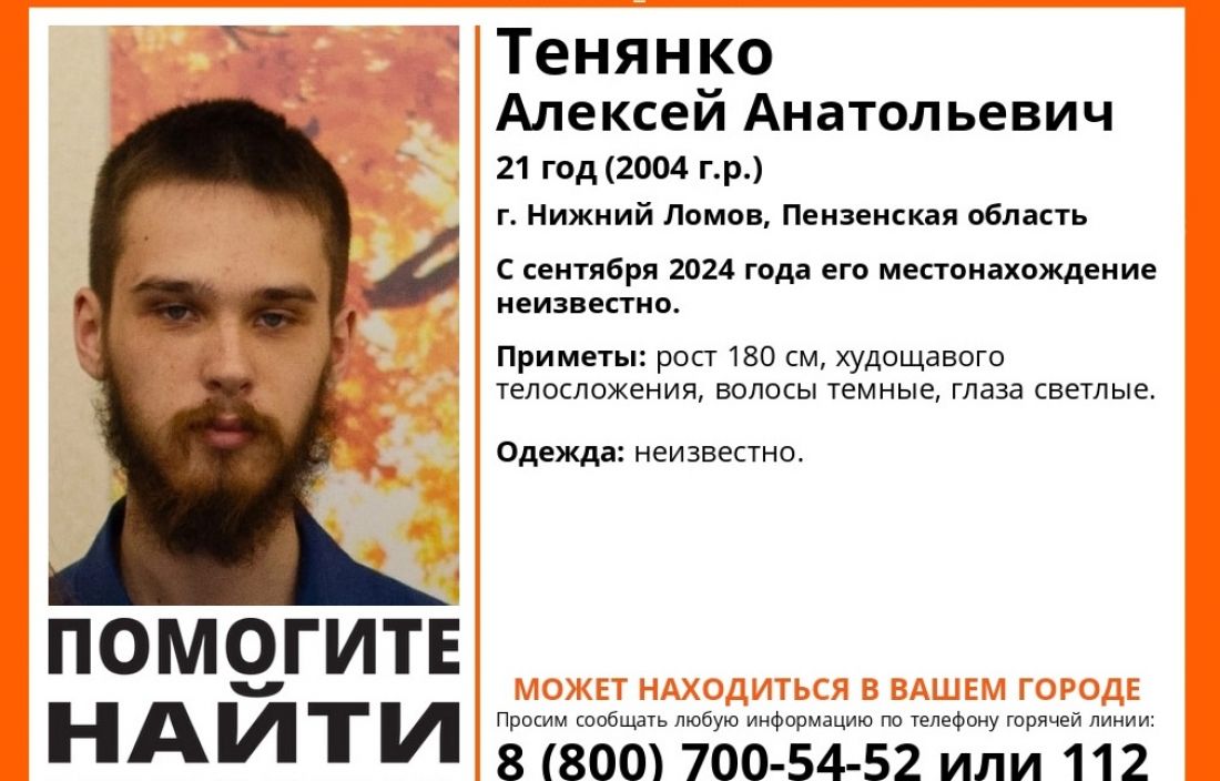 21-летний житель г. Нижний Ломов Пензенской области Алексей Тенянко пропал.