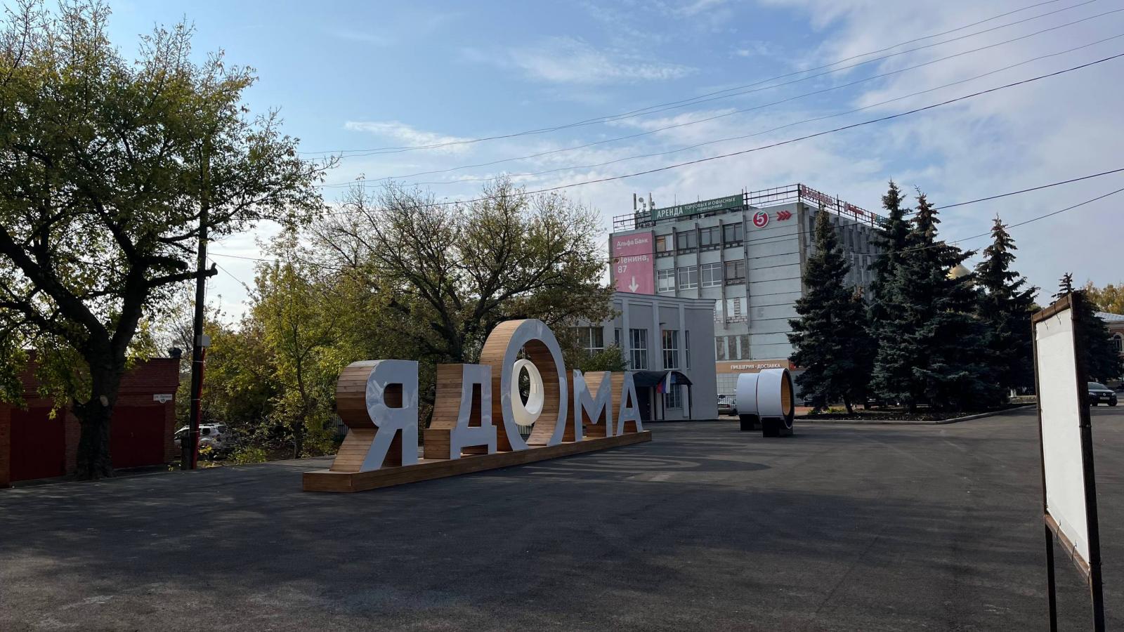 Общая площадь участка равна 2,6 тыс. кв.м. В настоящее время работы выполнены в полном объеме: площадка заасфальтирована, установлен светящийся арт-объект.