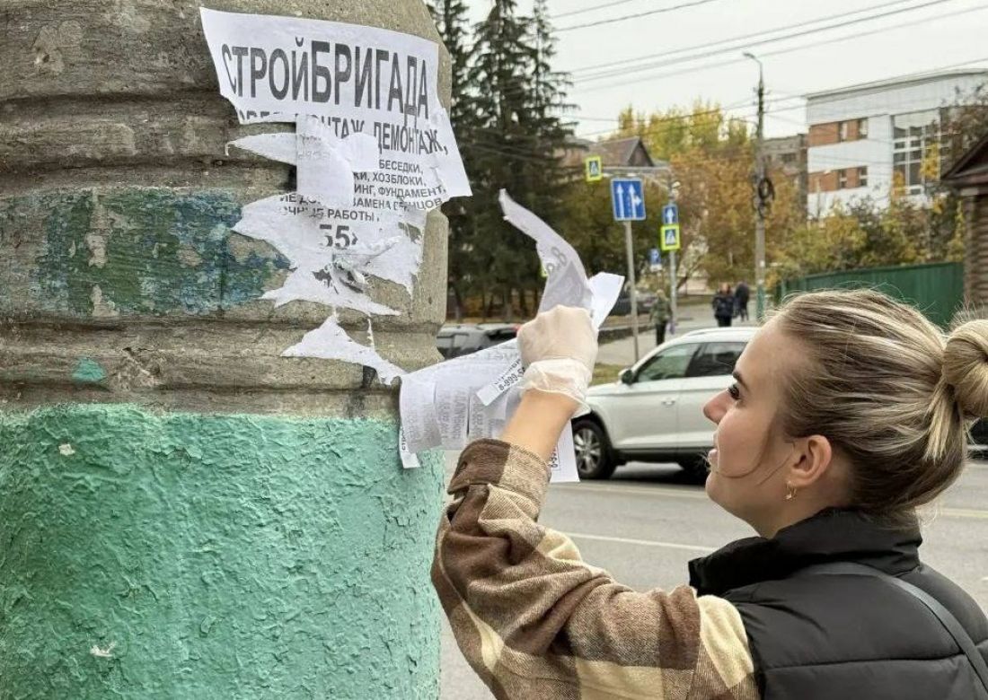На мноних улицах опоры освещения были обклеены рекламой строительной компании. Это яркий пример вопиющего неуважения к городу, отметил Денисов.