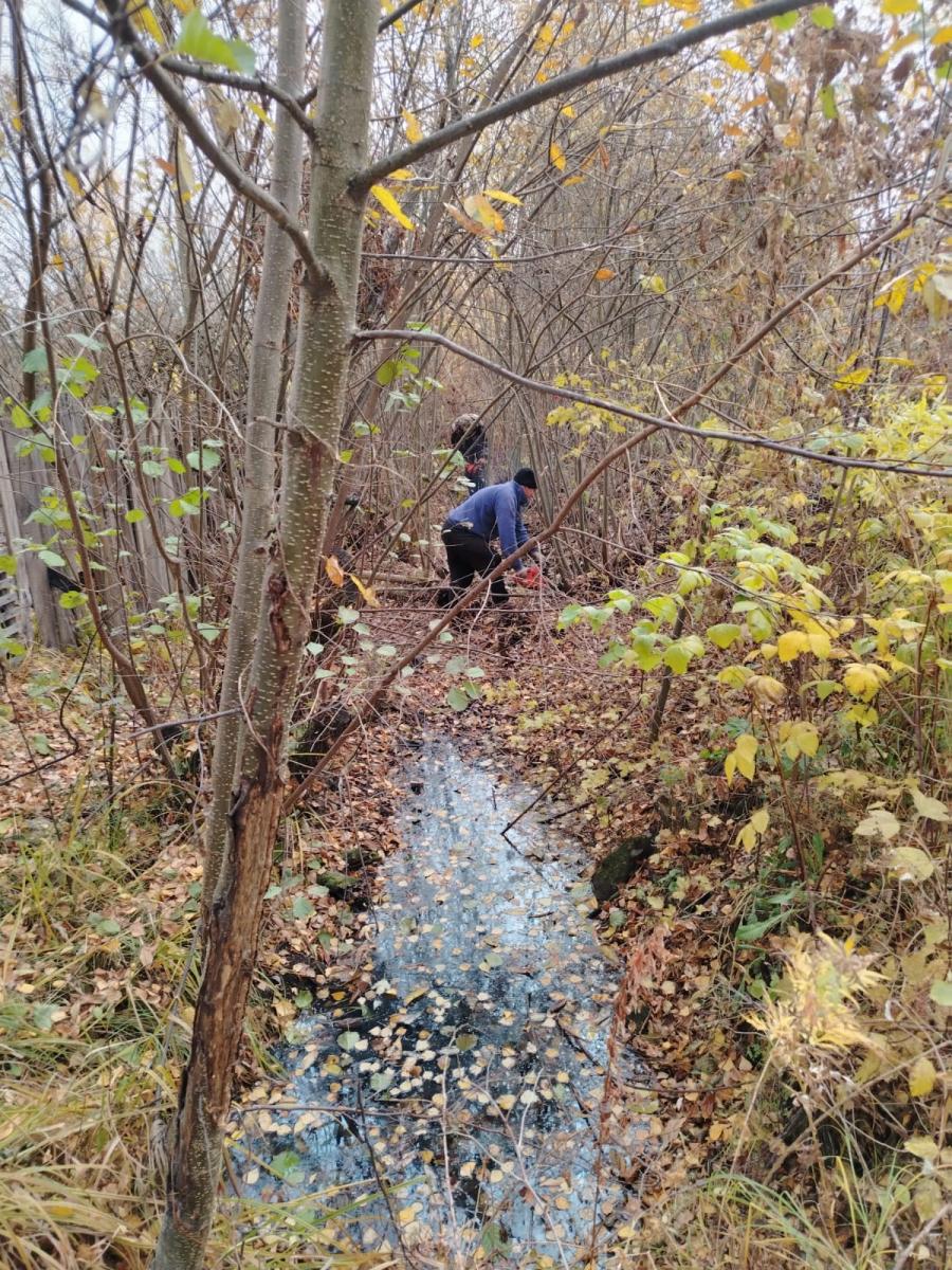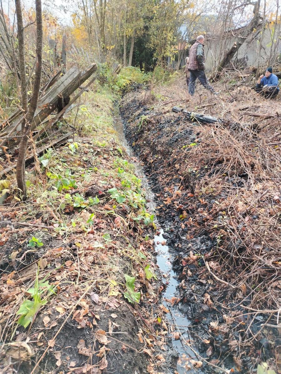 Они прибыли к ее дому и провели субботник, очистив сточную канаву. С помощью инструментов и вручную они устранили растительность, которая мешала свободному течению воды.
