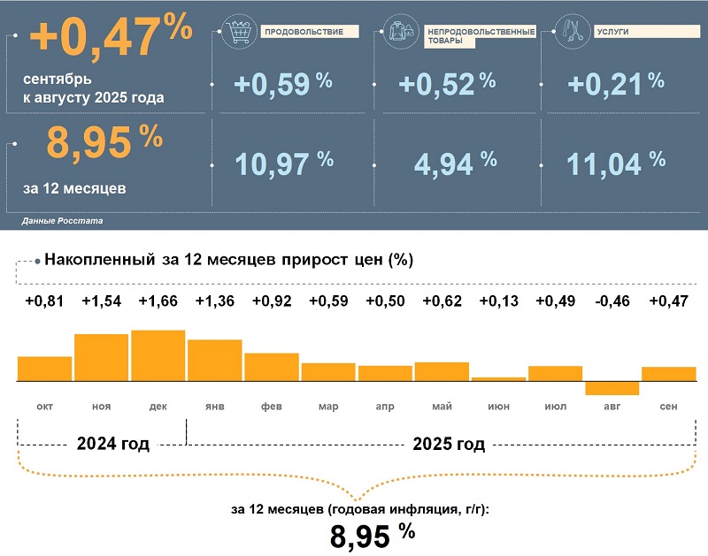 Согласно данным Росстата, в сентябре 2025 года цены в Пензенской области выросли на 0,47% по сравнению с августом.