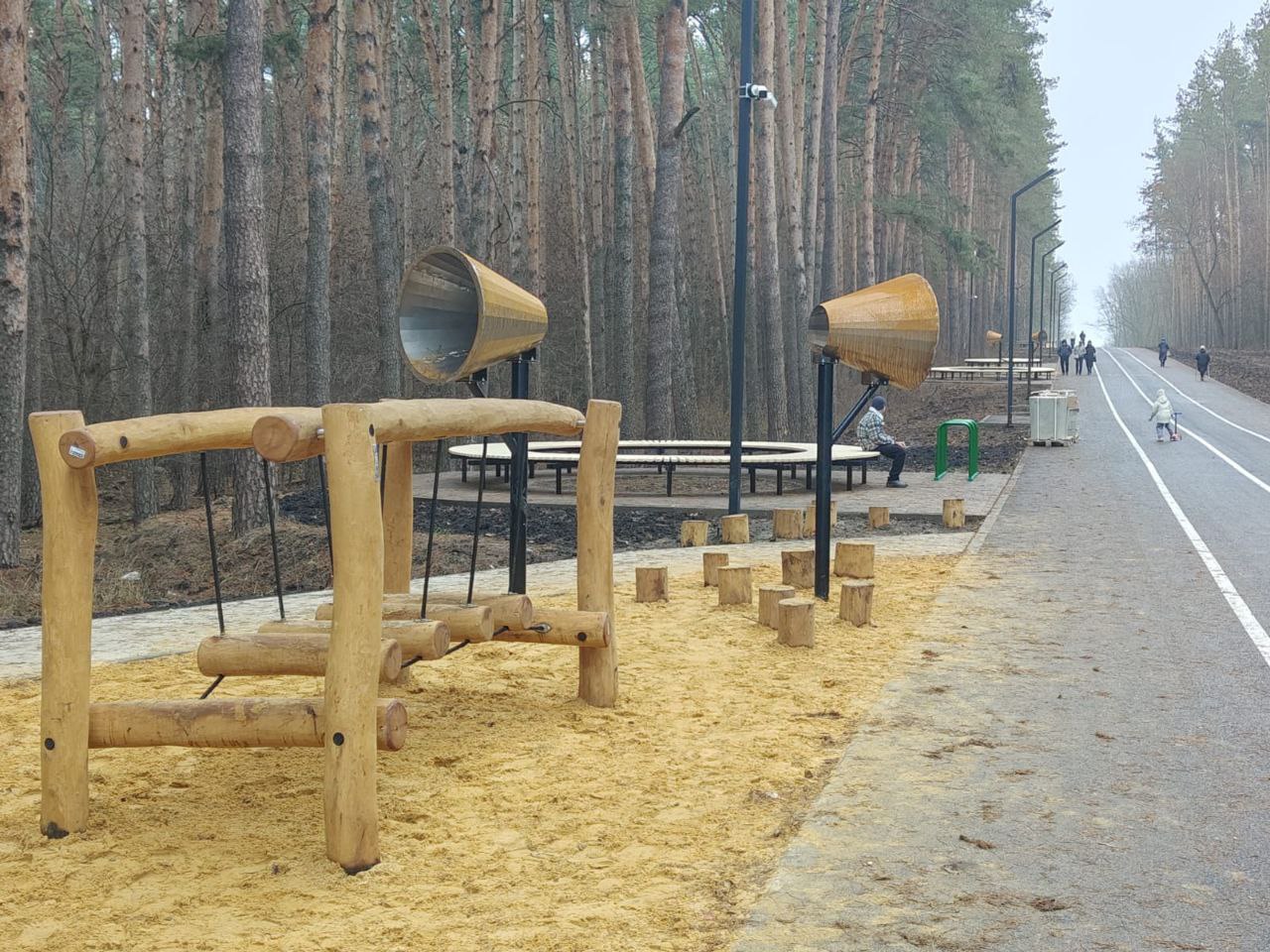 На аллее в сосновом лесу в Сердобске установили игровые элементы и арт-объект