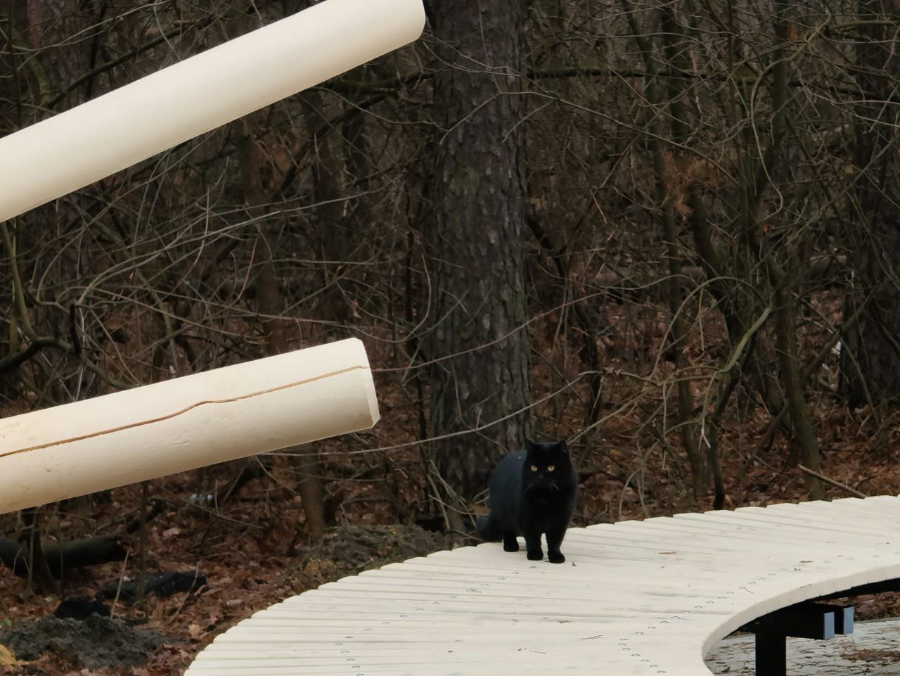 Также здесь появился необычный объект - огромный деревянный ёж. Идея родилась во время дизайн-игры, которую архитекторы, проектировавшие благоустройство, провели с учениками школы №9, расположенной в микрорайоне, в который ведет дорога. Дети придумали кормушку, где можно повстречать ежа - ёжермушку.