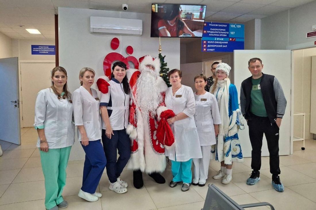 Дед Мороз и Снегурочка поздравили доноров и медицинских работников. Донорам вручали презенты с символикой Службы крови. Особенными подарками стали календари, изготовленные учащимися средней общеобразовательной школы №12 имени В.В. Тарасова.