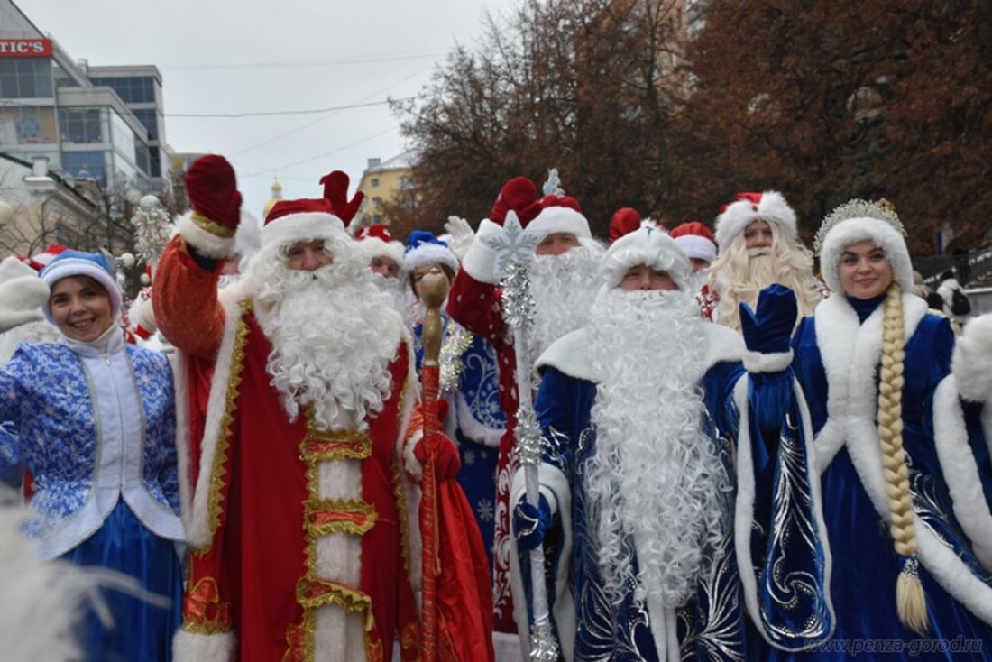 В среду от Фонтанной площади до площади Ленина прошли свыше 100 Дедов Морозов, Снегурочек и других персонажей из любимых русских сказок. В мероприятии участвовали зимние волшебники из всех районов Пензенской области. Завершилось шествие праздничной программой на площади и зажжением гирлянд на главной елке.