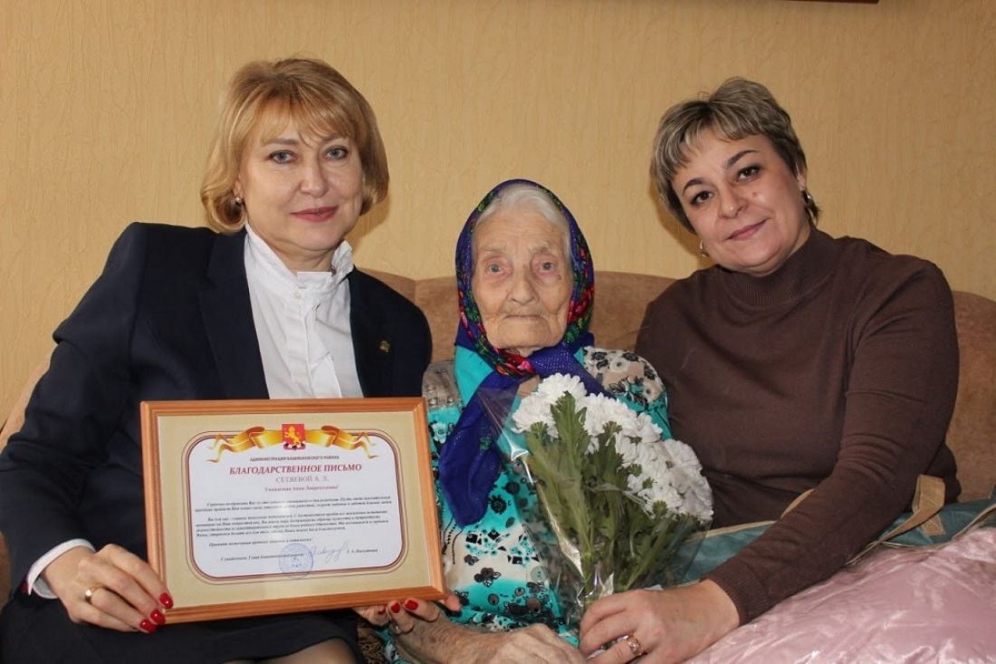 Цветы и подарки долгожительнице вручила глава Башмаковского района Тамара Павлуткина. Анна Сетяева также получила благодарственное письмо от районной администрации. Имениннице пожелали счастья и здоровья.