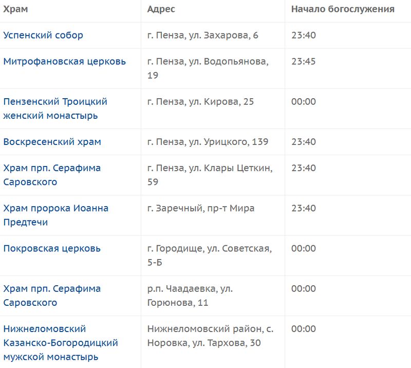 В ночь с 31 декабря 2025 года на 1 января 2026 года, когда Русская православная церковь чтит память мученика Вонифатия, в ряде храмов Пензы также состоятся праздничные богослужения.