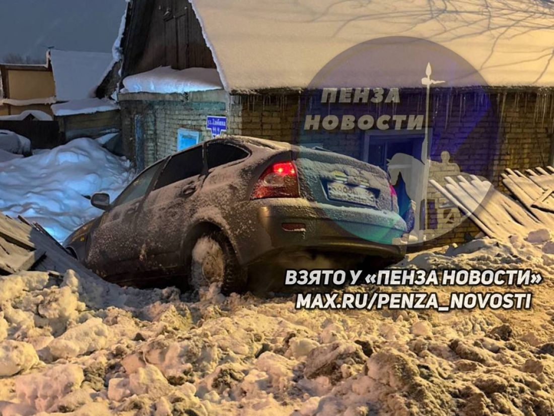 В Пензе на видео попала машина, которая влетела в забор на ул. Злобина