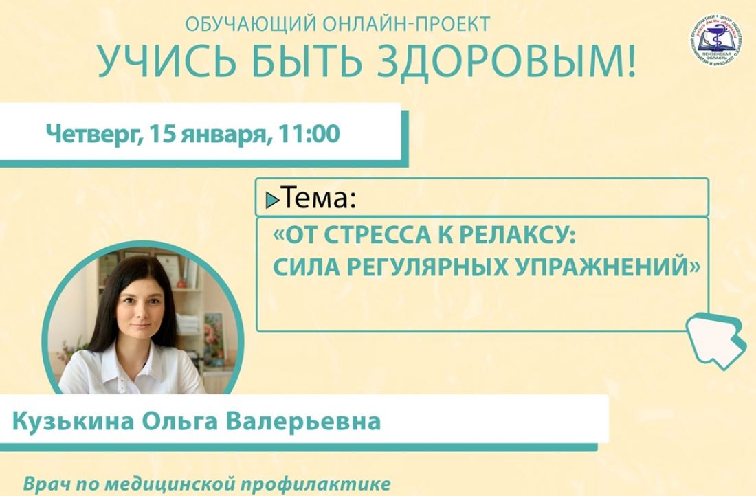 Трансляция по теме «От стресса к релаксу: сила регулярных упражнений» стартует в социальных сетях в группах Пензенского областного центра медицинской профилактики в 11:00.