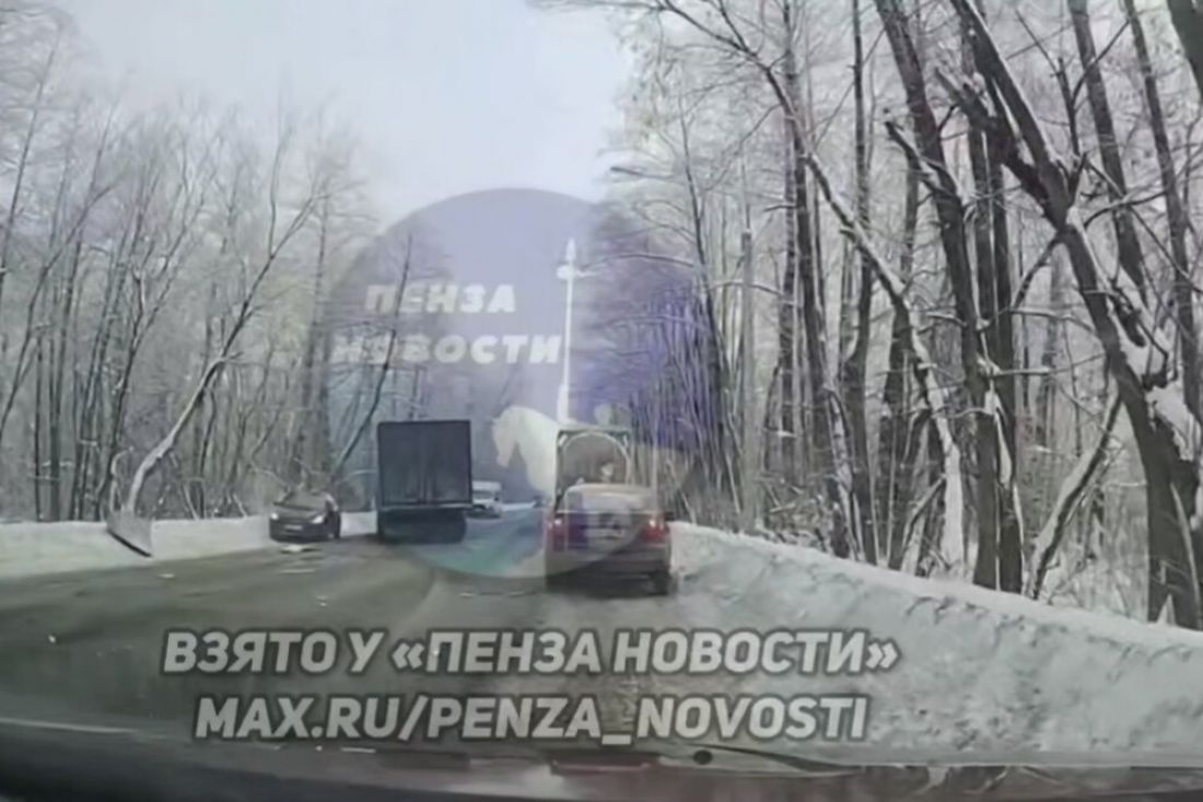 Очевидцы сообщают о массовой аварии с участием большегрузов и легковушки рядом с Ахунским переездом в Пензе.