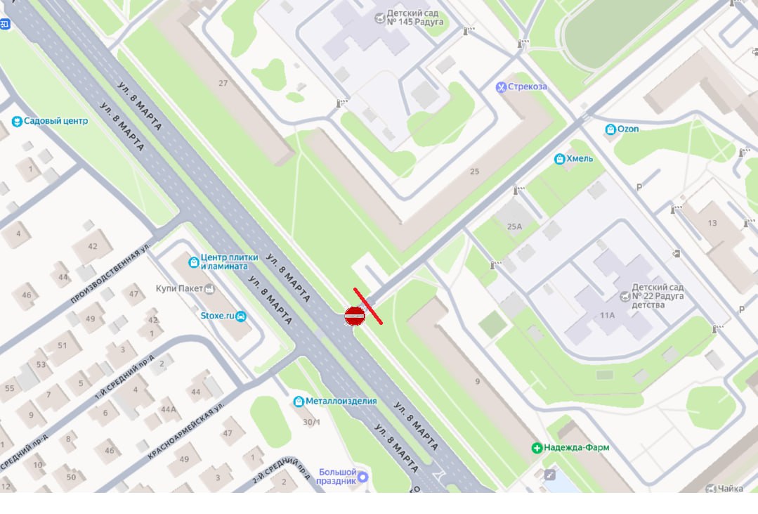 По данным управления жилищно-коммунального хозяйства Пензы, с 19:00 часов 28 января до 08:00 часов 29 января будет перекрыто движение на участке внутриквартальной дороги между домами №9 и №25 по ул. 8 Марта.