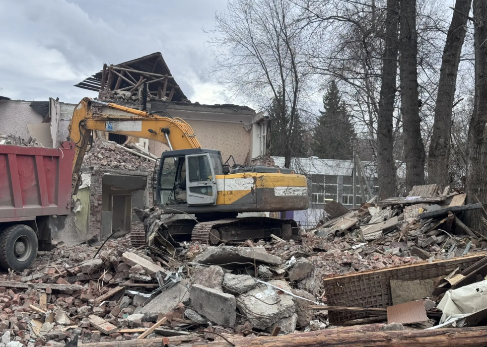 Разбор дома проведут поэтапно и завершат в течение двух месяцев. Подрядчик начал демонтаж крыши и стен, расчистку участка от строительного мусора.