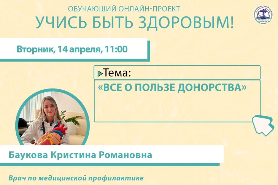 14 апреля состоится очередной прямой эфир онлайн-проекта «Учись быть здоровым!».