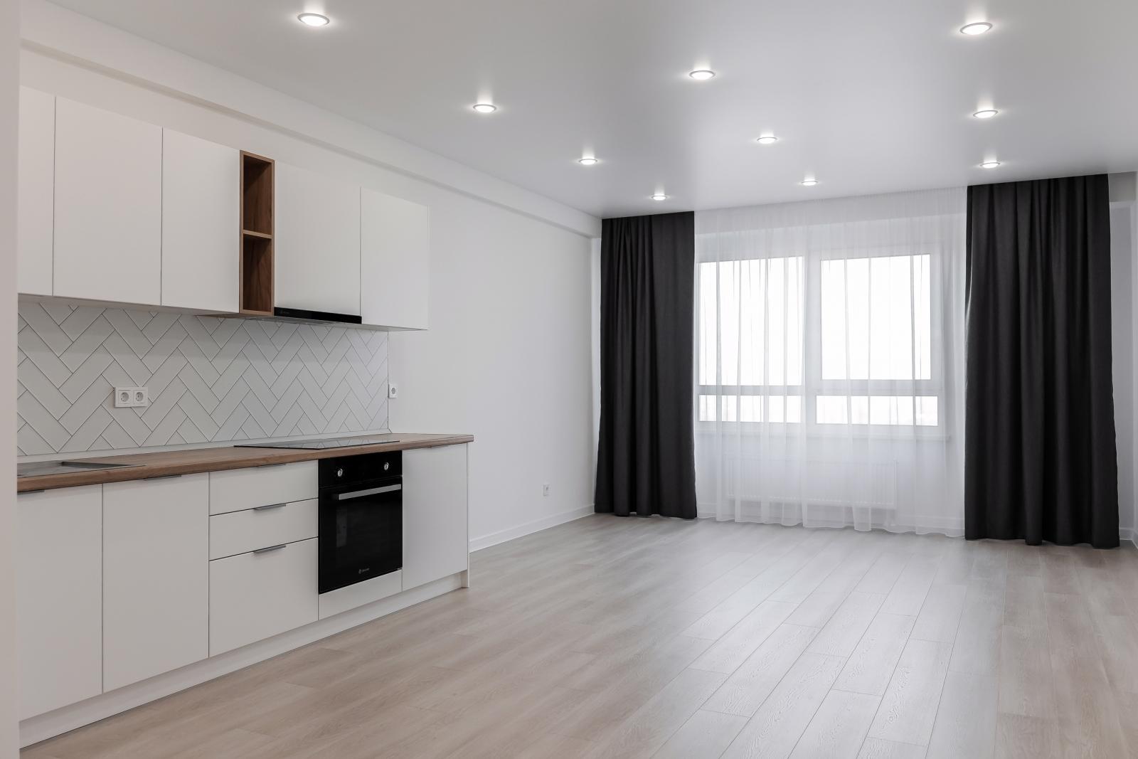 1. Готовая отделка «под ключ». Если вы покупаете жилье с «голыми стенами» - придется обеспечить ее наполнение. Стройматериалы, мебель, техника, оплата работы бригады - на это придется тратить время и деньги. А с полной отделкой «Все включено». Серия 25» вы получаете полностью готовую квартиру. В нее уже входят обои, ламинат, двери, натяжные потолки, освещение. Полностью укомплектован санузел, в кухне установлен гарнитур с бытовой техникой.