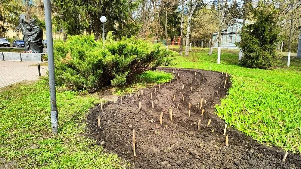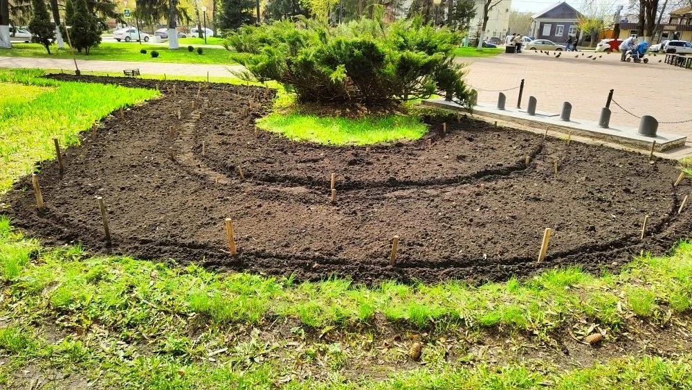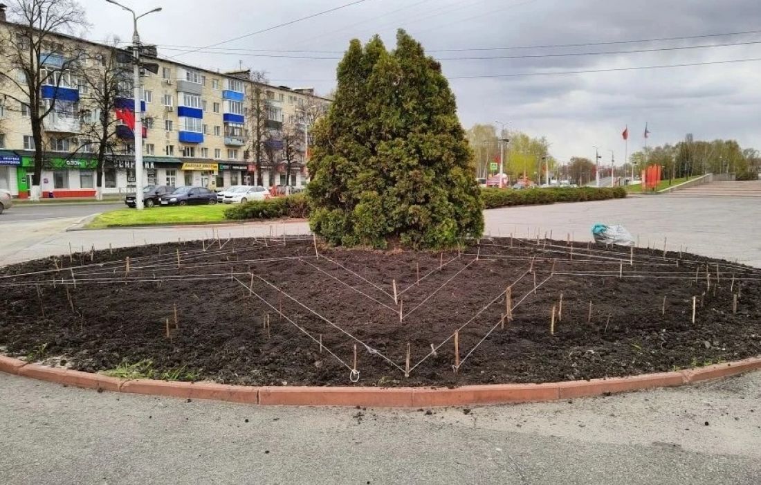 Специалисты «Пензавтодор» начали разбивку будущих цветников.