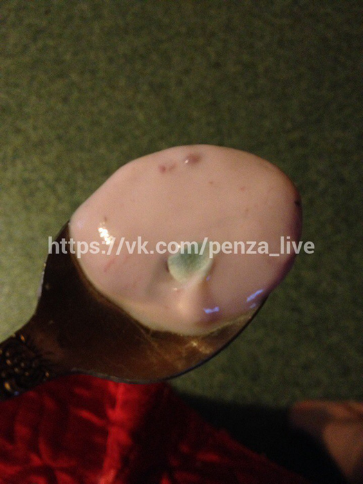 В группе «Пенза live» Интернет-пользователь, зарегистрированная под ником Zetmy Хильмит, разместила фотографии молочного десерта, купленного в магазине. Первое, что удалось извлечь из пластикового стаканчика, - зеленоватую плесень, хотя изготовитель обещал наполнитель «лесные ягоды».