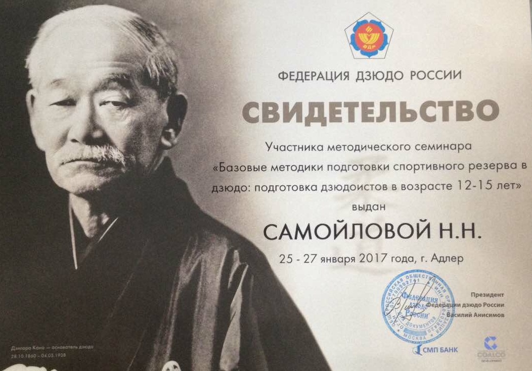 Тренер Федерации дзюдо Пензенской области Наталья Самойлова приняла участие в работе семинара «Базовые методики подготовки спортивного резерва в дзюдо: подготовка дзюдоистов в возрасте 12-15 лет», состоявшегося в Адлере.