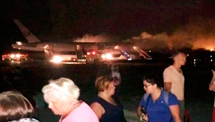 Посадка была крайне тяжелой, ведь масса гигантского «Boeing 777» составляет почти 300 тонн, а запас топлива, рассчитанного на 12 часов полета, составлял более 80 тонн. Из-за открытого огня опустошить баки для безопасной посадки было невозможно, а из-за превышенной массы перегрелись и загорелись колеса авиалайнера. Едва лайнер остановился, началась эвакуация по надувным трапам, а пожарные аэропорта начали тушить самолет.
