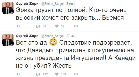 UPD. Адвокат Эрика Китуашвили в микроблоге в Твиттере опубликовал запись, в которой говорится, что СК подозревает видеоблогера в причастности к покушению на жизнь президента Ингушетии. Официального подтверждения от СК на этот счет пока не поступало.