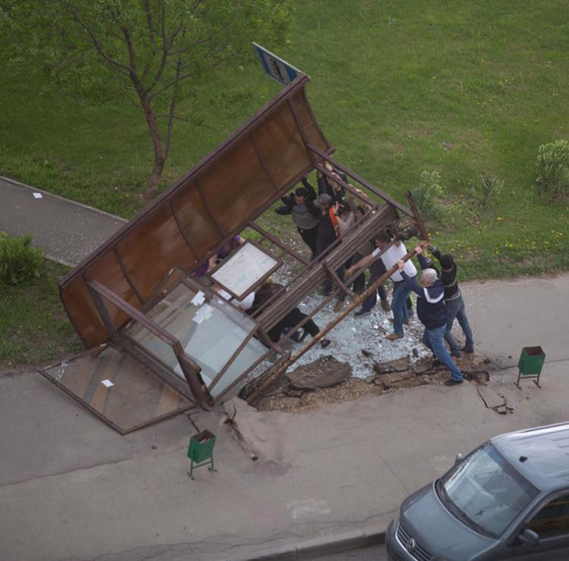 UPD: как видно на этом фото и фото в комментариях ниже, остановка была без бетонных якорей, просто была закатана сверху асфальтом», - пишет очевидец трагических событий.