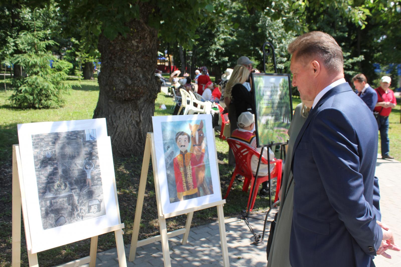 На газоне в читальном зале под открытым небом желающие могли освежить в памяти подзабытые строки, здесь же была устроена выставка портретов Лермонтова, написанных детьми.