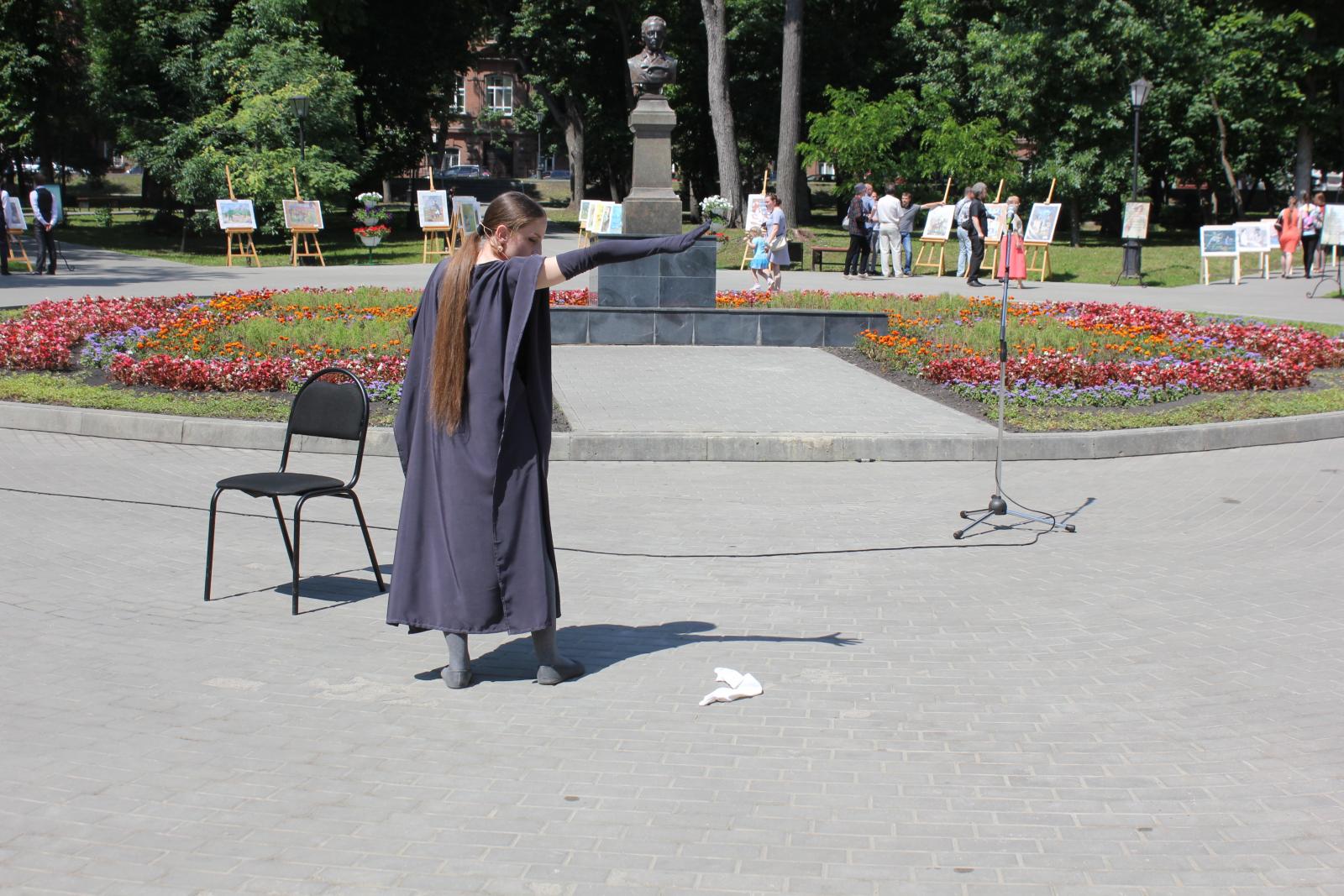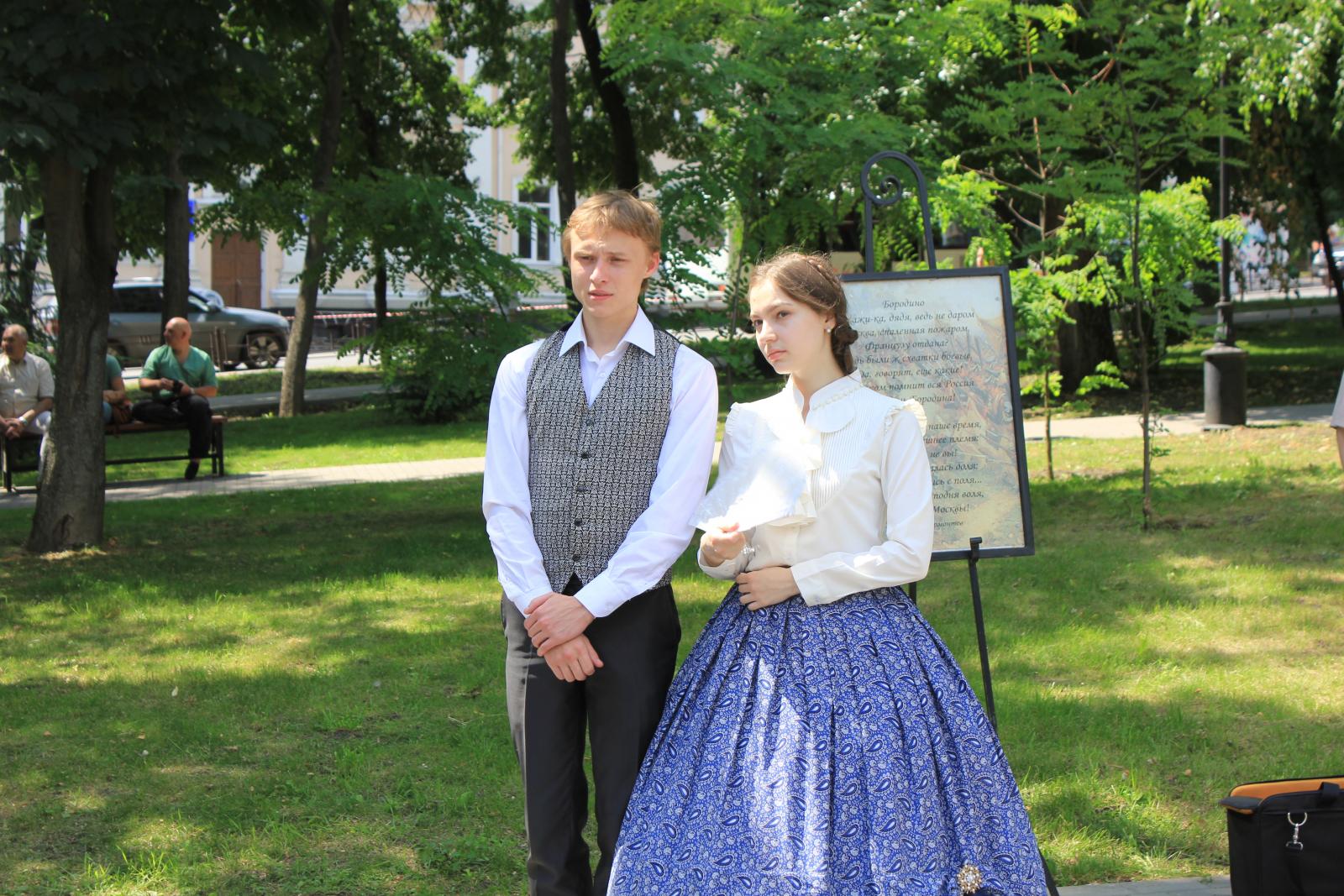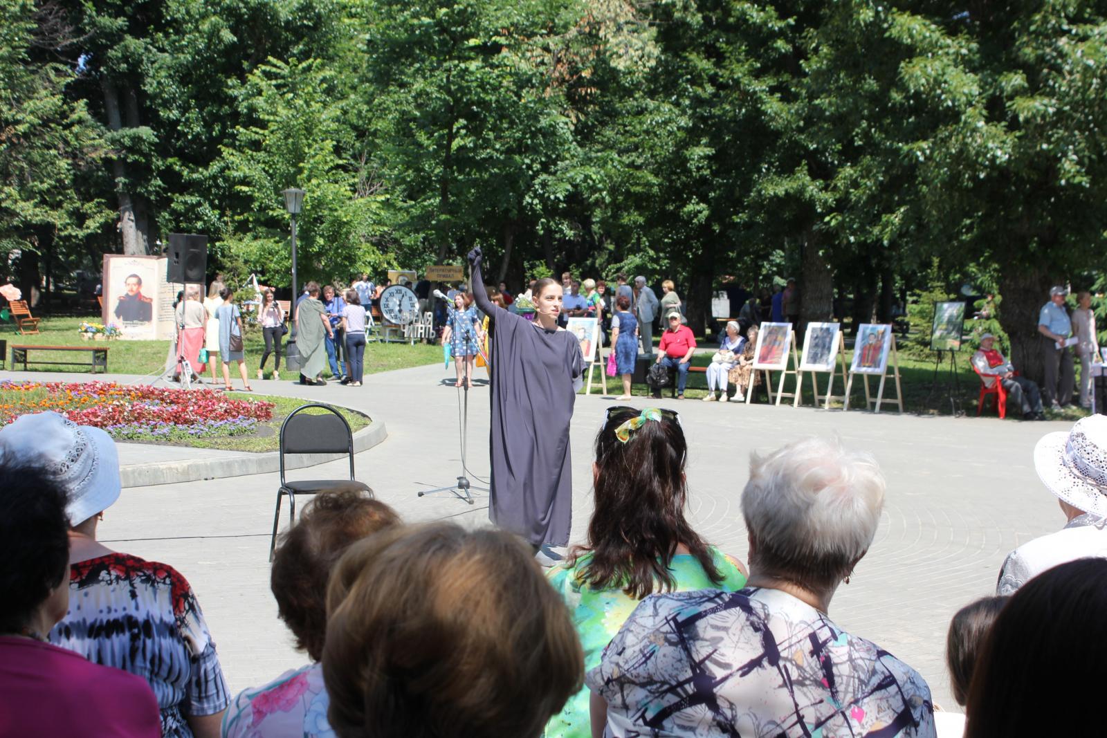 Большинство зрительских мест, впрочем, было устроено в тени, и те, кто успели их занять, могли с комфортом окунуться в мир произведений поэта с помощью литературно-музыкальной композиции.