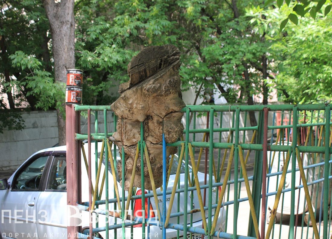 Дерево с течением лет стало неотъемлемой частью ограждения вокруг сушилки для белья в одном из дворов на улице Белинского. Даже после того, как старый ясень спилили и выкорчевали, разлучить их не удалось. Проза обыденности и поэзия жизни.