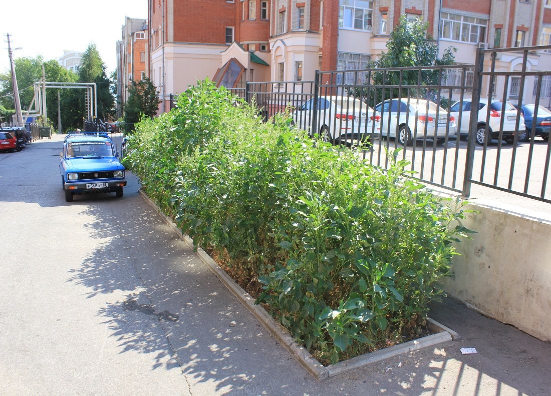 Неприметную клумбу в одном из дворов на улице Володарского можно считать пензенским эко-ноу-хау в сфере озеленения и ландшафтного дизайна. Неизвестно, стало ли это результатом работы озеленителей-новаторов или само выросло, однако заросшая сорной травой полутораметрового роста клумба не выглядит заброшенной. Все аккуратно и радует глаз обывателя – чуть-чуть подровнять, и будет образцом для подражания.