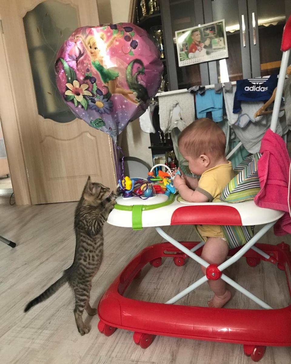А мама тем временем поделилась новым фото, где на заднем плане виден настенный календарь, открытый на странице с изображением Дениса. Впрочем, эту деталь еще нужно углядеть: главное внимание привлекает Ярослав, деловито восседающий на детском стульчике, и любопытно тянущийся к его игрушкам мохнатый питомец.