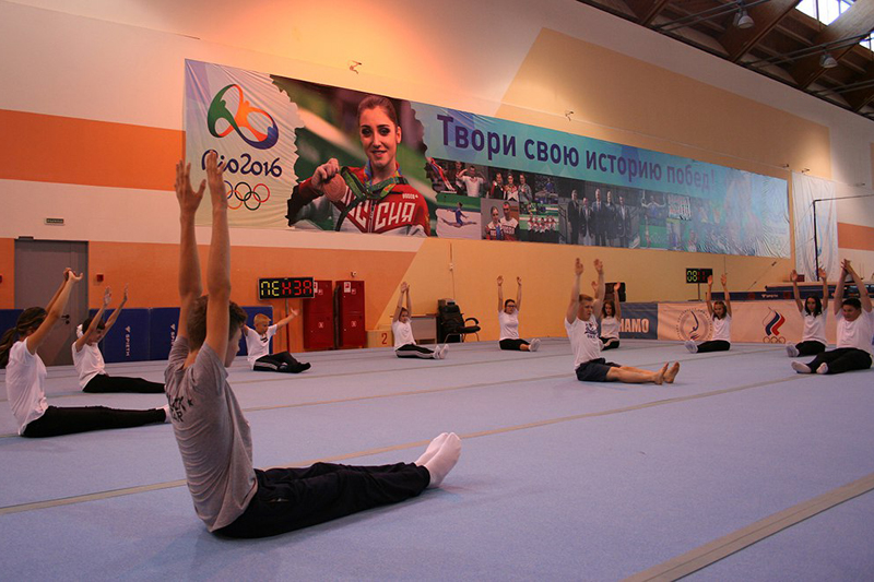 В роли учителя физкультуры выступил пятикратный призер Олимпийских игр, чемпион мира и Европы Денис Аблязин и тренер школы Павел Павлов. Как сообщается в официальной группе школы по гимнастике имени Натальи Лавровой, разминка была построена аналогично той, которую знаменитый пензенский гимнаст выполняет на спортбазе «Озеро Круглое».