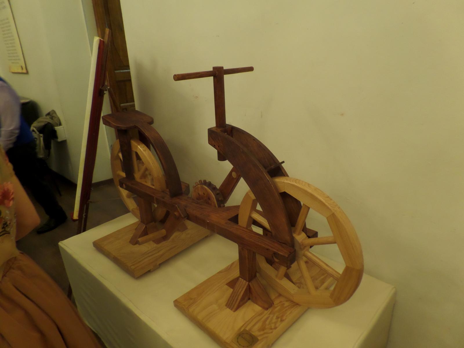 Парашют, прототип велосипеда, разнообразные приспособления для ведения боевых действий, знакомые большинству из нас по рисункам Леонардо, представлены в действующих моделях.