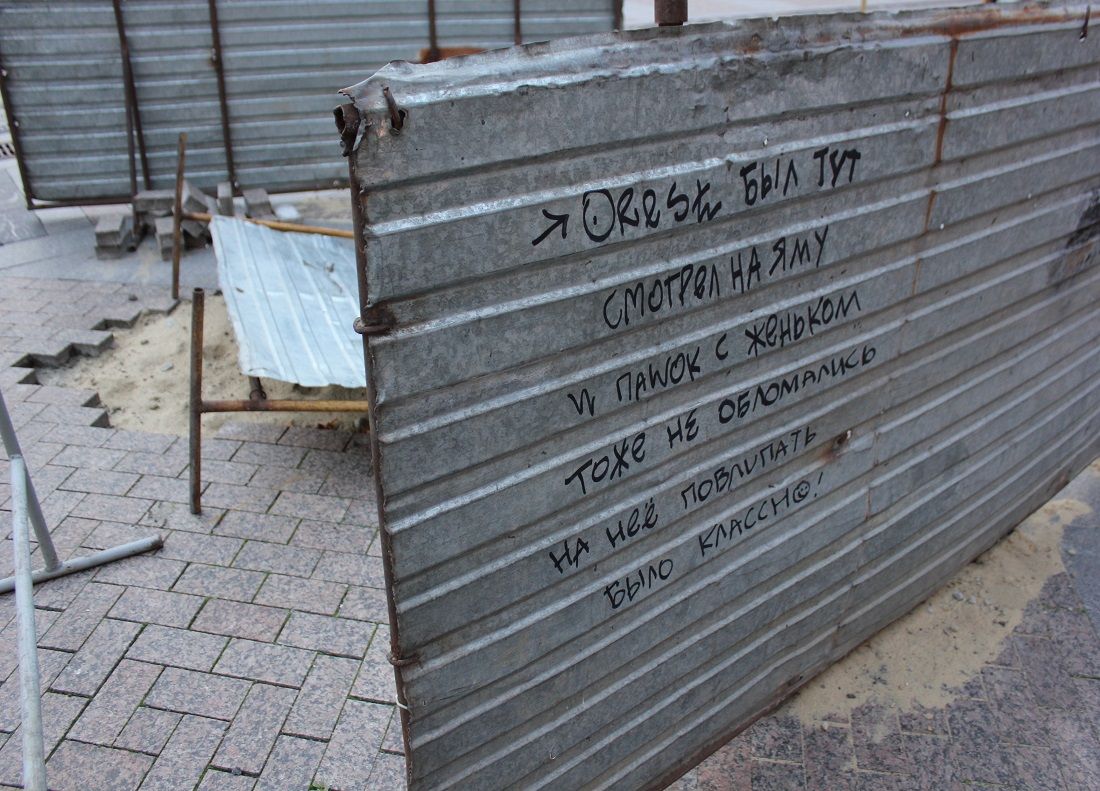 Замечательную яму на Московской жители Пензы могли наблюдать в течение трех недель. Рабочие чинили что-то необходимое в коммуникационной системе города, проводили реновацию. Копали долго - как археологи, закапывали - еще дольше, и этот процесс все продолжается. Что, конечно, не улучшает настроения прохожих. Обламывает.