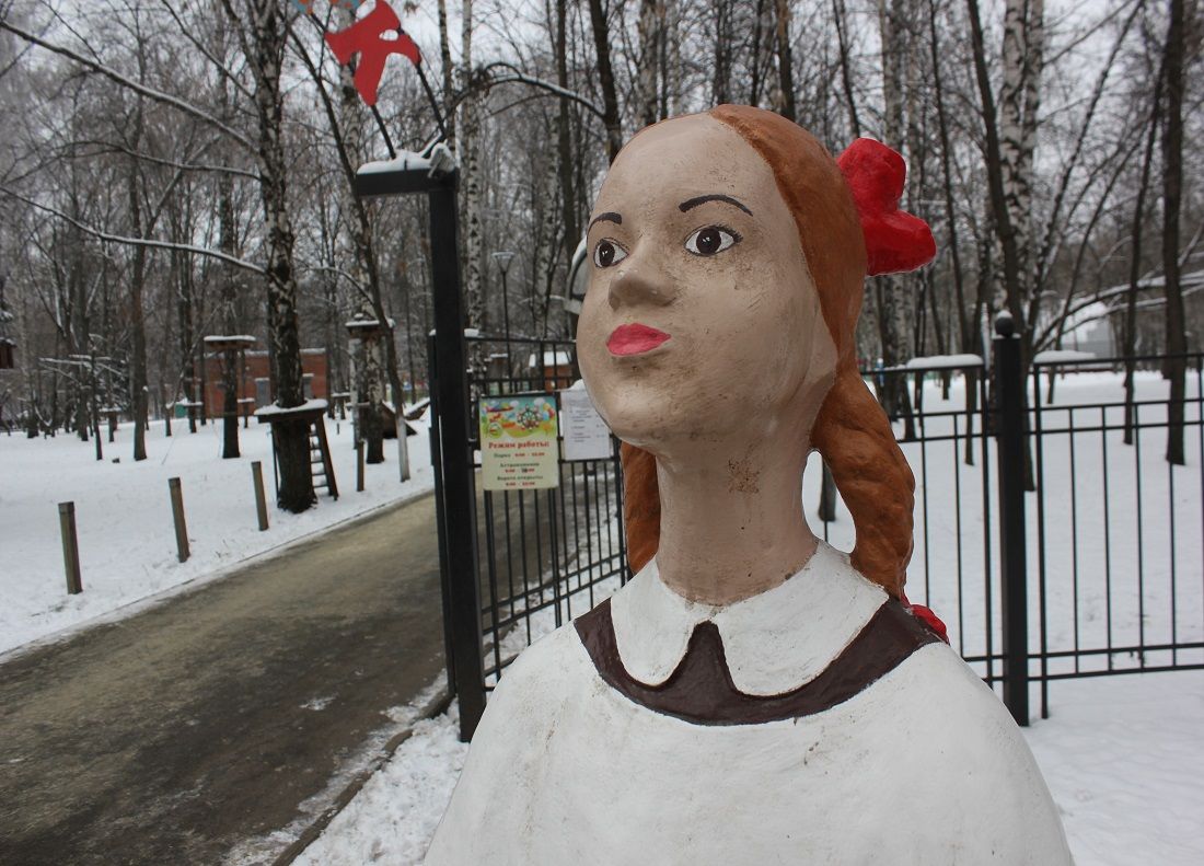 За то, что убрать новый арт-объект, даже собирали подписи и в конце концов эту пощечину общественному вкусу сослали в Арбеково. Уже почти три года она украшает вход в парк Ульяновых. Стоит все так же - в летней форме при любой погоде, гордо вздернув голову - и, кажется, пришлась к месту. По крайней мере, дети в обнимку с опальной школьницей фотографируются охотно. Впрочем, столь же охотно они делали это и на Московской.