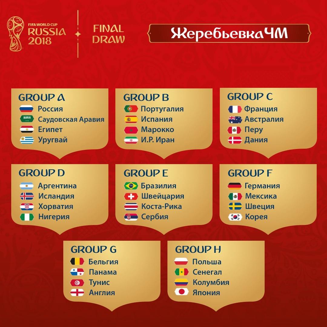 Так, вместе со сборной России в группу А попали сборные Уругвая, Саудовской Аравии и Египта.